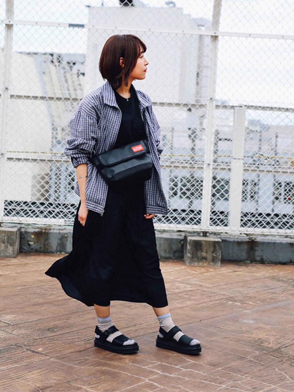 Manhattan Portage Staff(HEAD OFFICE)のメッセンジャーバッグ「Mat Vinyl Casual Messenger Bag」を使ったコーディネート