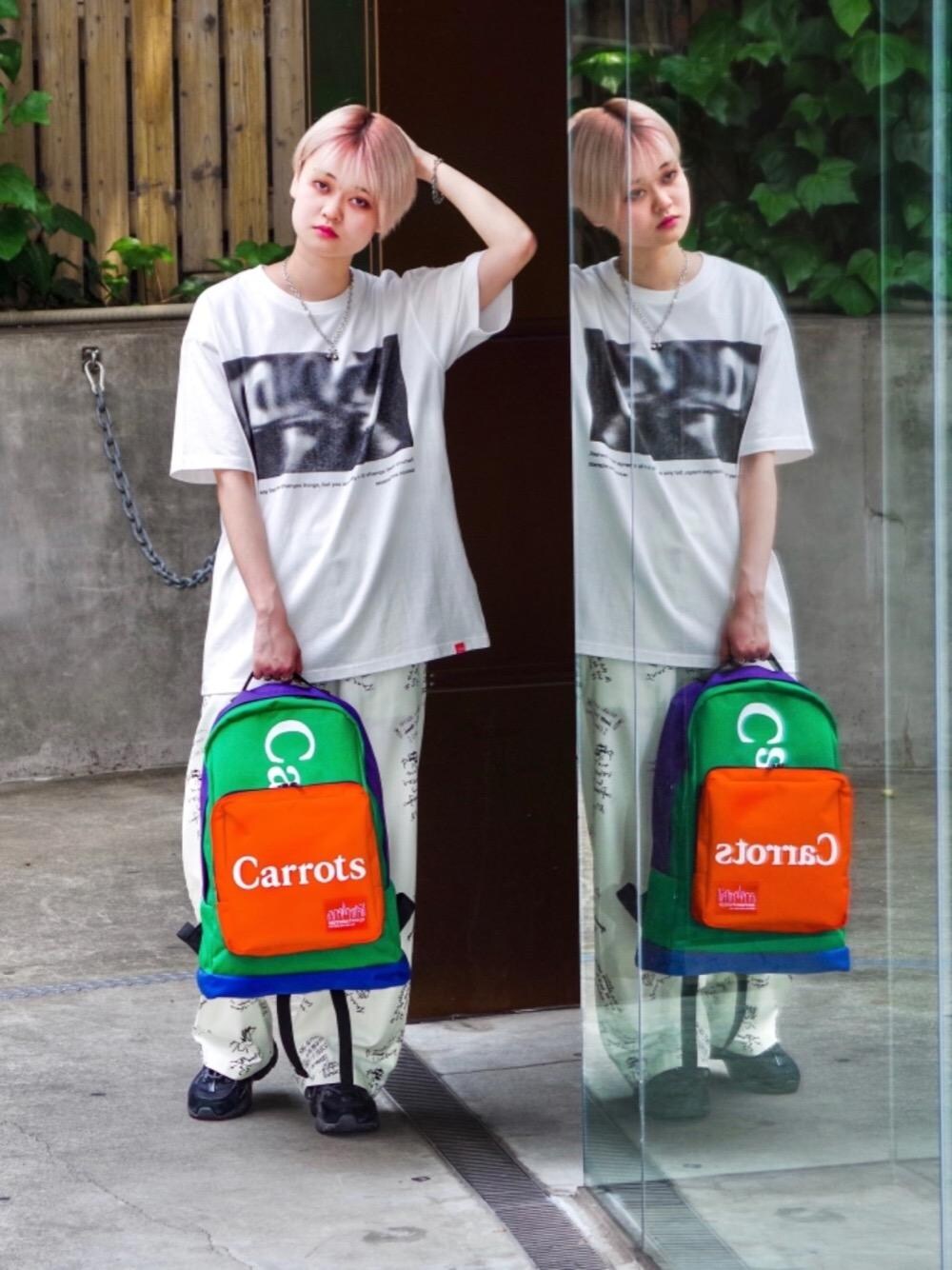 carrotsコラボの限定バックパック🎒 <br> 今しか手に入らない激アツ商品です!! <br> ManhattanPortageのトータルコーディネートでストリート感満載な感じにしてみました🛹