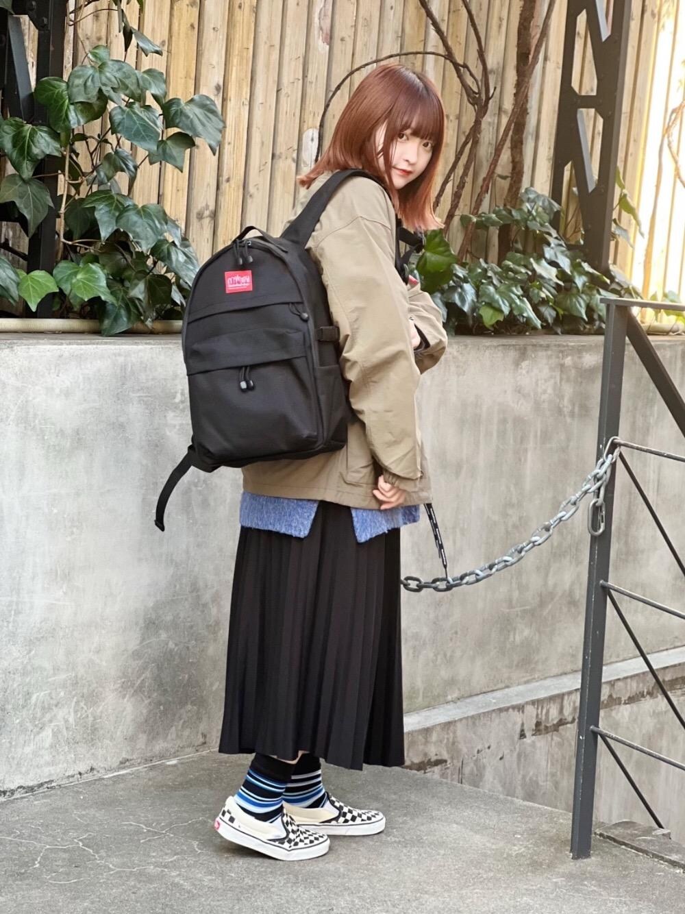 このバックパック、、 背中にすっぽりと収まりすごく背負いやすいです!!! プリーツのスカートにコーチジャケットを合わせてキレイめカジュアルコーデに🙆♀️ Instagram▶︎@i.am.omt