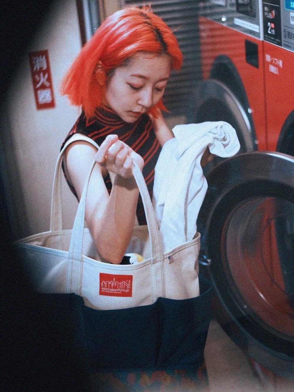 テーマ:深夜のコインランドリー ランドリーバッグとしても使えてしまう、なんとも便利なこのバッグ。 底部分が防水素材になっているのはもちろんのこと 造りがしっかりしているので、バッグ自体が自立してくれるのもポイント。(自立してくれると物がとても出し入れしやすいのですァ)