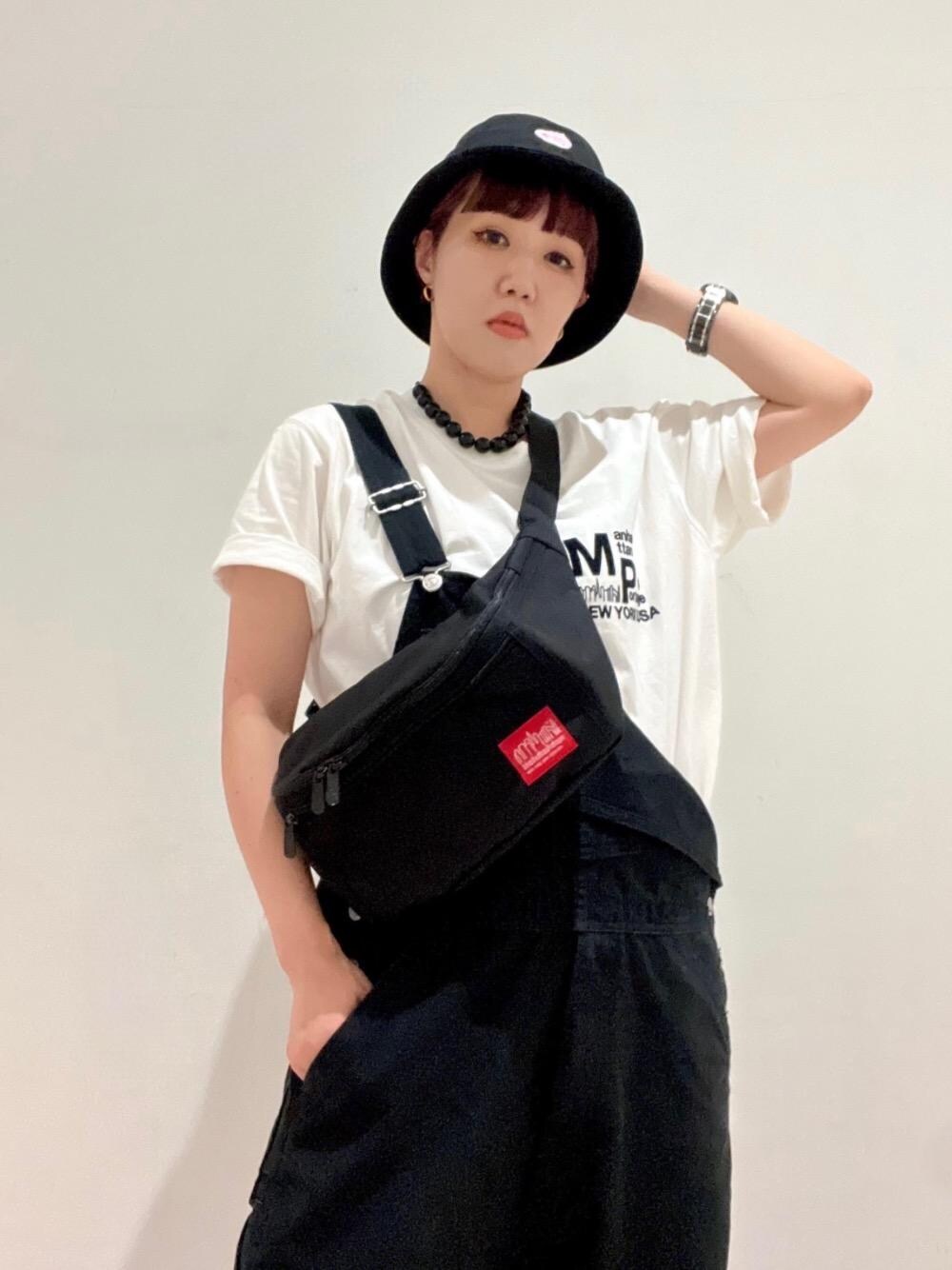 なんとこちらのウェストバッグは1リットルのペットボトル収納可能☀️ ボリュームがあり女性が背負っても可愛いです😍 そしてバックプリントが可愛いTシャツ👚、リンゴのワッペンが可愛いハット🍎モノトーンでまとまり👍です!!