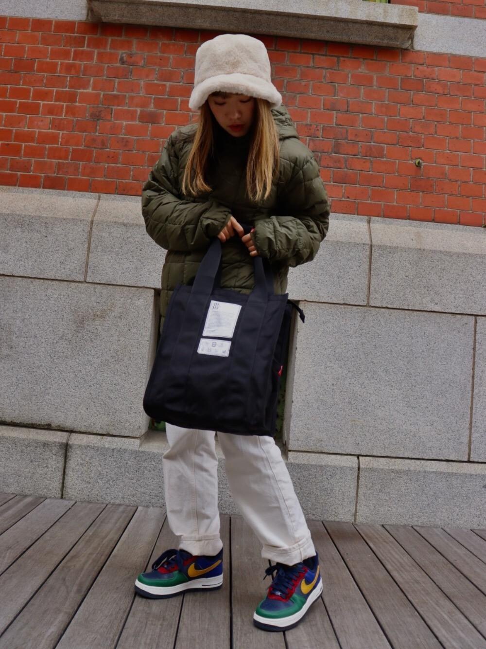 Manhattan Portage Staff(HEAD OFFICE)のナイロンジャケット「Hood-Set Down Jacket TAION」を使ったコーディネート