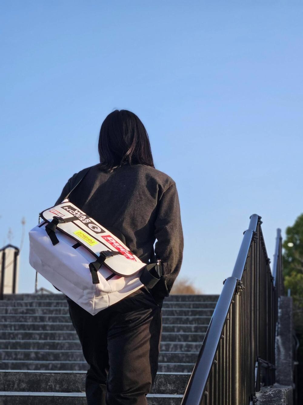 3月30日発売。NYにショップを構える「WAR HORSE」、イタリアのオートバイメーカー「DUCATI」、NY老舗のスケートショップ「SHUT」との4thコラボレーションモデルです。 意外に思える「Ducati」も、マンハッタンポーテージがメッセンジャーカルチャーと共に成長してきたことを考えれば、それほど意外ではないかなと個人的には感じます。 白地にイエロータグ、裏地は赤と限定商品の中でも非常に珍しい配色パターンです。ポケットの中も場所によって色が違うのも楽しんでいただけるポイントかなと。 素材はターポリンビニール(防水)とコーデュラナイロンが使い分けられています。防水生地は汚れが付きにくく、コーデュラは丈夫なので汚れてもブラッシングなどお手入れがしやすいです。万が一とれない汚れでも、これだけ白ければ逆に良い味が出てそれすらも思い出です。白でも気にせずガンガン使っちゃいましょう。 大きいサイズなので、おおよそ2泊3日程度の荷物でも入ります。もし重くなるようでしたら、ショルダーパッドも併せてぜひご検討くださいませ。Ducatiの赤いロゴとリンクしててとても良きです。