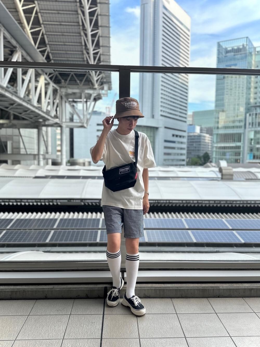 Manhattan Portage Staff(HEAD OFFICE)のメッセンジャーバッグ「Nylon Messenger Bag Flap Zipper Pocket Embroidered Patch THRASHER」を使ったコーディネート