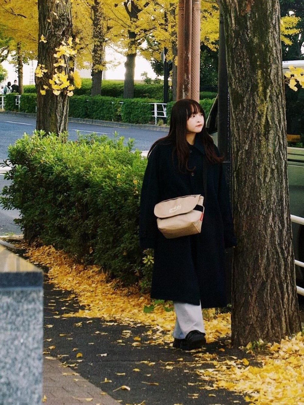 ネイビーカラーのコートに合わせるとベージュカラーのナチュラルさがより際立つ組み合わせでお気に入りです🟡 濃淡をつけることで、メリハリのあるコーディネートに✨