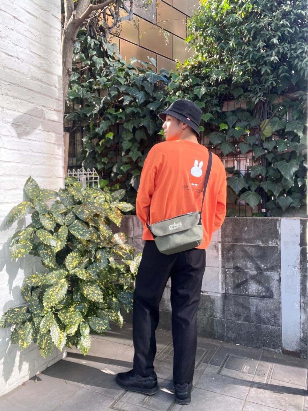 miffyコラボTシャツとキャンバス素材のメッセンジャーバッグを合わせるとキャロットカラーになります。 明るさもでてカラーバランス良いです!!