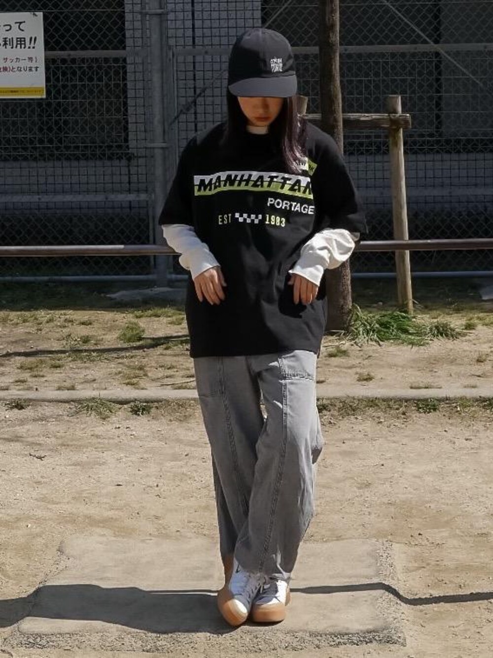 春のストリートコーデ☘️ 暖かくなってきて外でも踊りたくなるそんな季節になってきました🕺 グラフィックがおしゃれな半袖Tシャツの下にロンTを重ねれば、春はじまりたての今からでも半袖コーデ楽しめます☺️ キャップはゴムでサイズ調整するタイプなので頭にフィットします!踊っても落ちません!