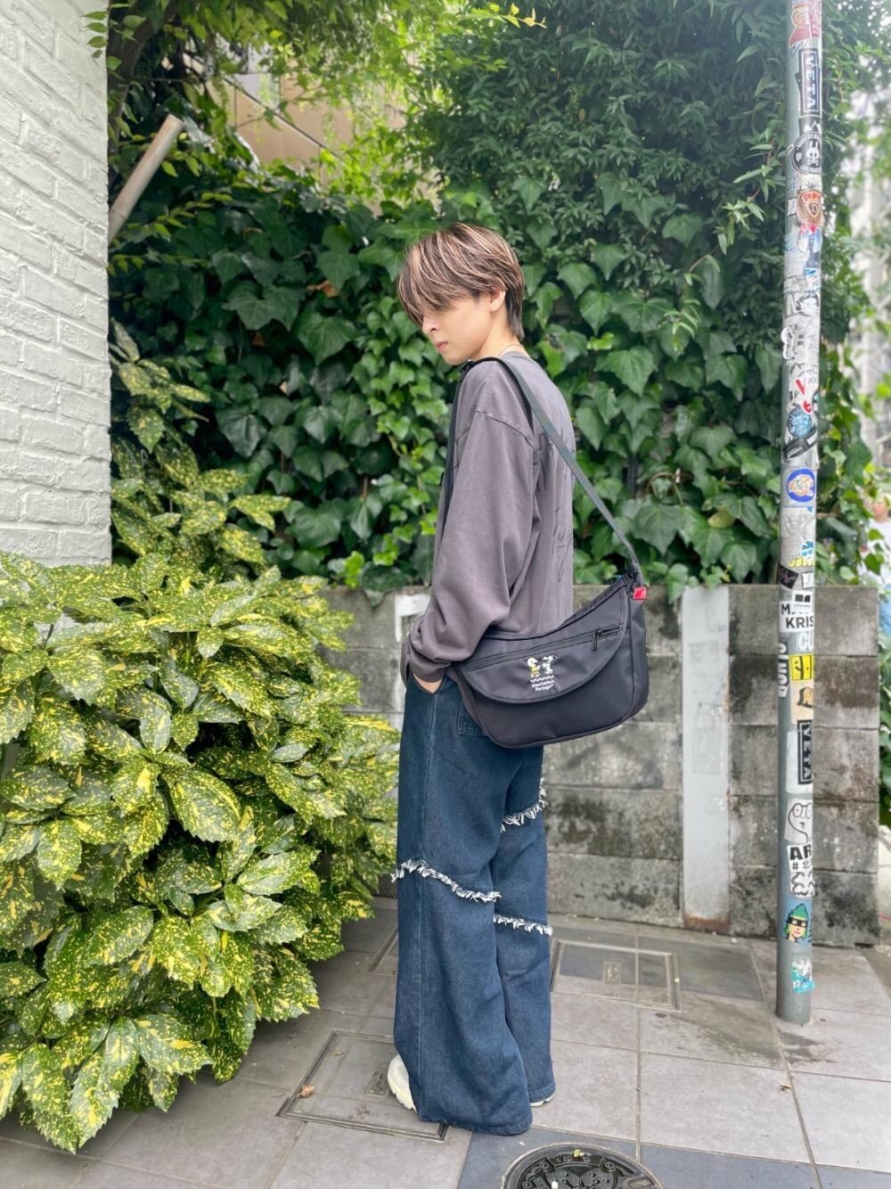 PEANUTSコラボの三日月型のバックは、体に沿いやすくて膨らみが出にくいのが良いポイントです!! チャーリーブラウンとスヌーピーの2ショット刺繍デザインがめちゃくちゃ可愛い(∩ˊ꒳ˋ∩) ロンTはスヌーピーとウッドストックが2人で踊ってるようなデザインで、チャコールに黒色のプリントになってるのでイラストの主張が激しくならないのは良きです😁