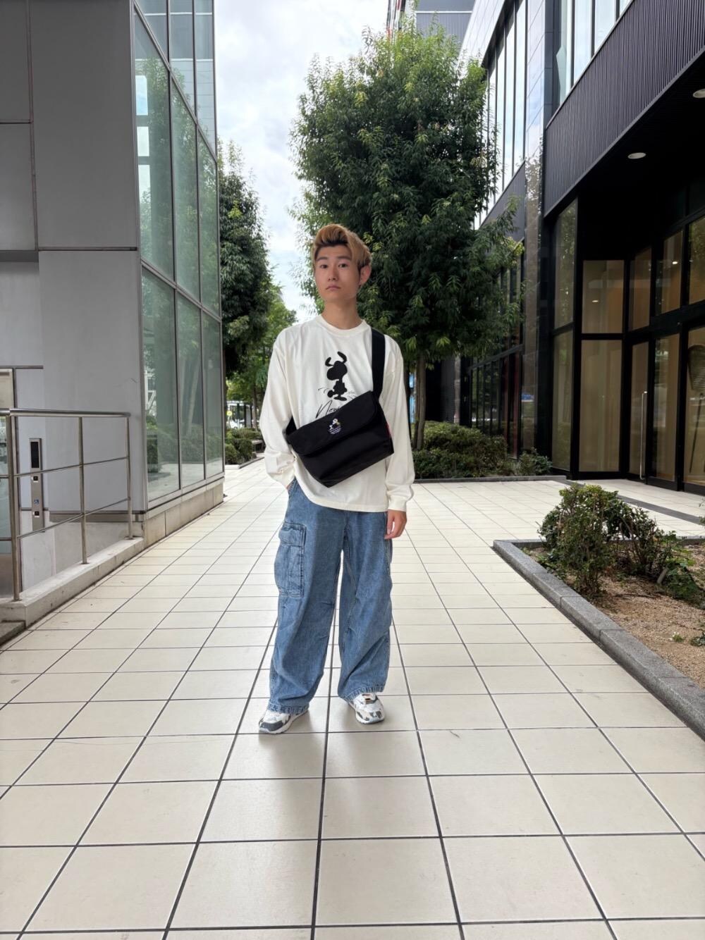 Manhattan Portage Staff(HEAD OFFICE)のメッセンジャーバッグ「CASUAL MESSENGER SLIM BP W/DIV MGNT PEANUTS 25」を使ったコーディネート