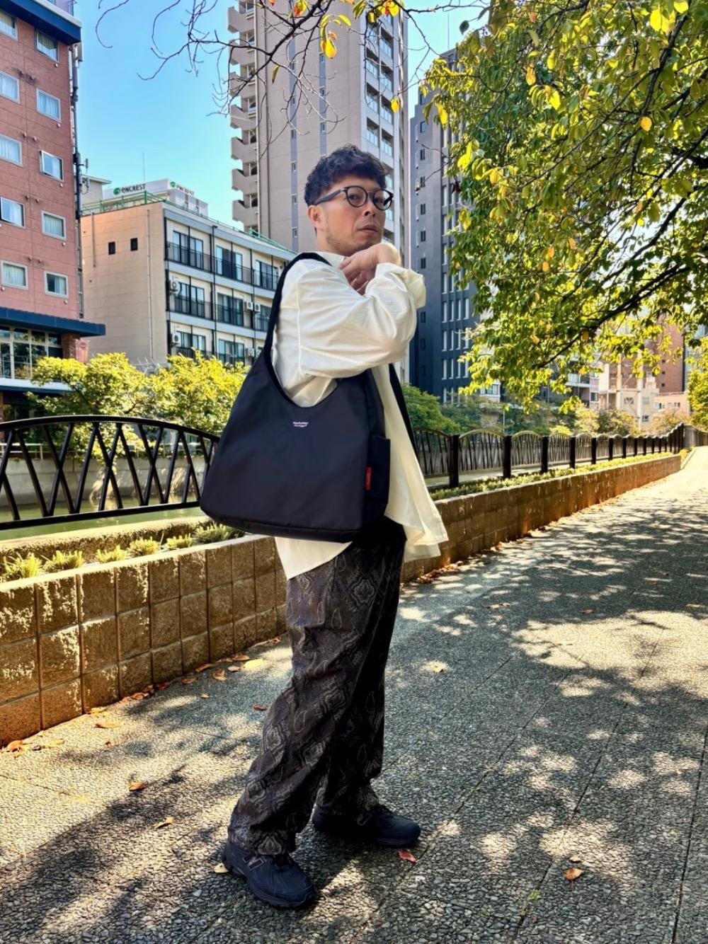 Manhattan Portage Staff(HEAD OFFICE)のトートバッグ「KIPS BAY TOTE FLIGHT NYLON BACKING」を使ったコーディネート