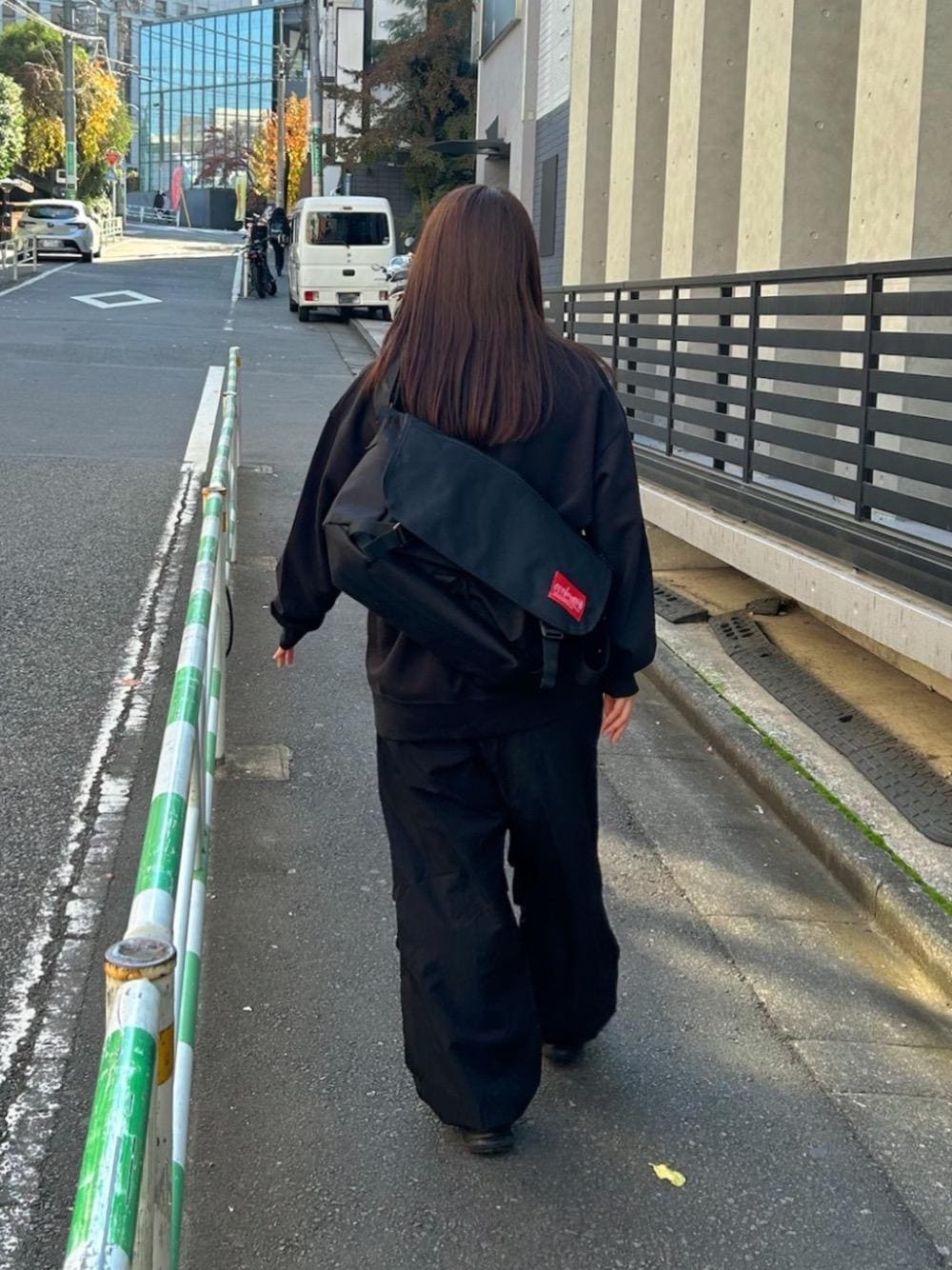 後ろで短く、前で短く そんな感じで背負うのが好きです⭐️ ブラックでまとめたコーデに 赤いタグが映えます🧑🎄
