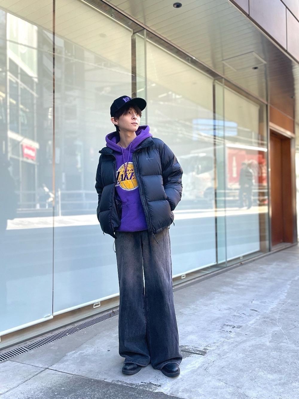 この季節必須級のダウンジャケットです! 軽くて保温性の高いダウンで、コーデの主役になるひと品になってます✨️ キャップは季節感のあるコーデュロイ生地で刺繍の紫カラーが差し色でも使えるので、汎用性高いと思います😎