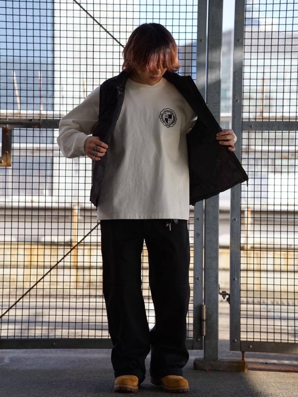 今新作ロンTは生地がしっかりしておりますので、春秋に1枚で着ても、ファッションが完成します また私のように、レイヤードさせてダウンベストと合わせたりすると、Eminemを彷彿とさせる90sストリートっぽいスタイルもやれますので、この1枚が1年の中で色々な顔を見せてくれると思います