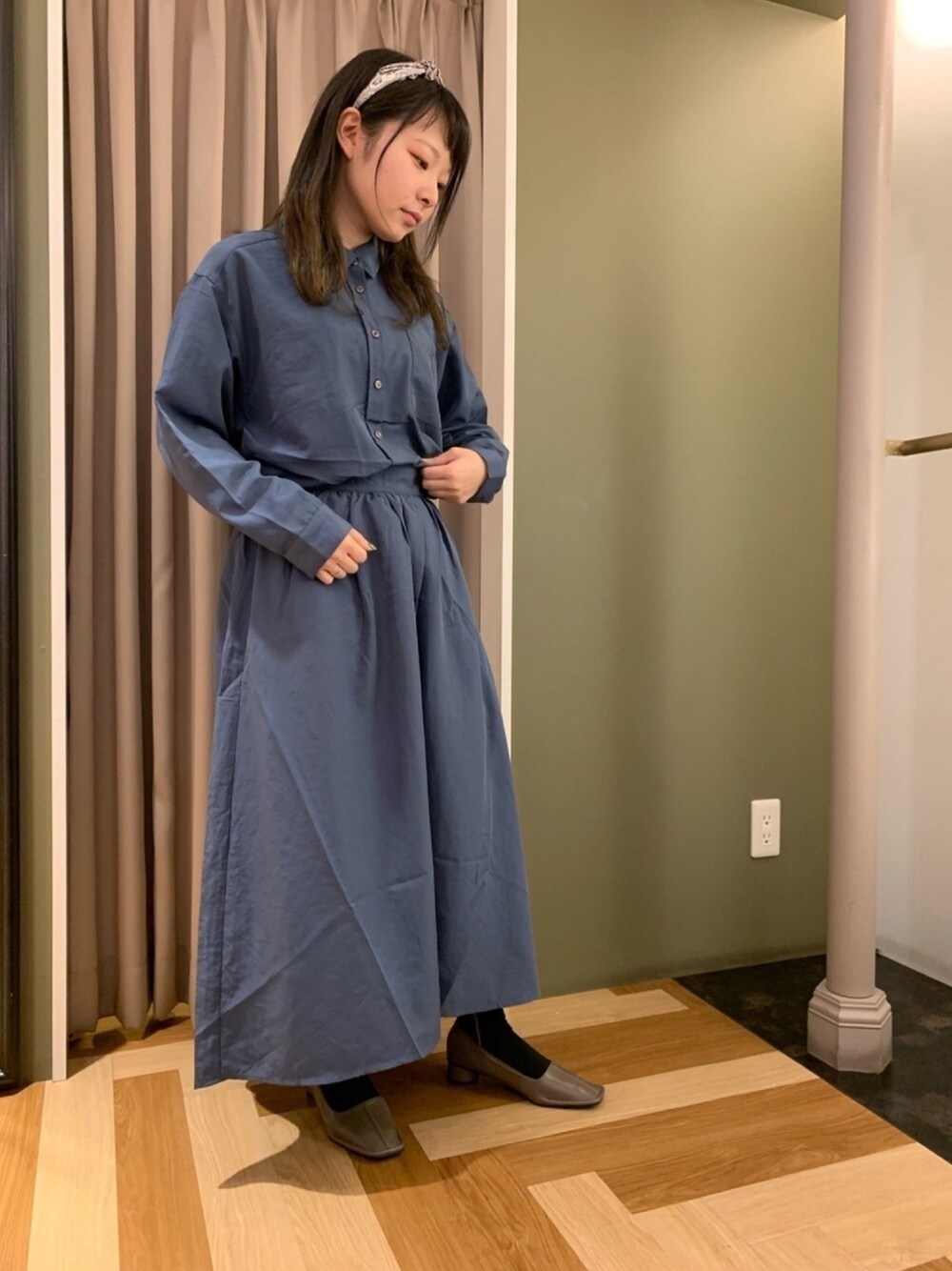 ◎セパレート風シャツワンピ ブルーが可愛いシャツワンピ シャツインver. 着るとき、着ぐるみ着るみたいです😳笑