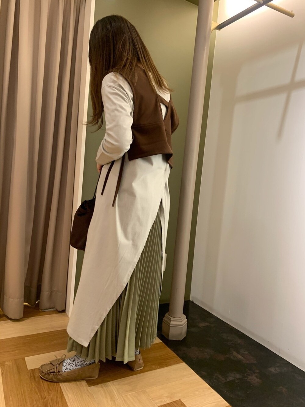 ◎オーガニックコットンバックスリットワンピ ◎フレア×バックプリーツスカート ブラウン×カーキ! バックプリーツがオシャレに見える ワンピースコーデ…♩