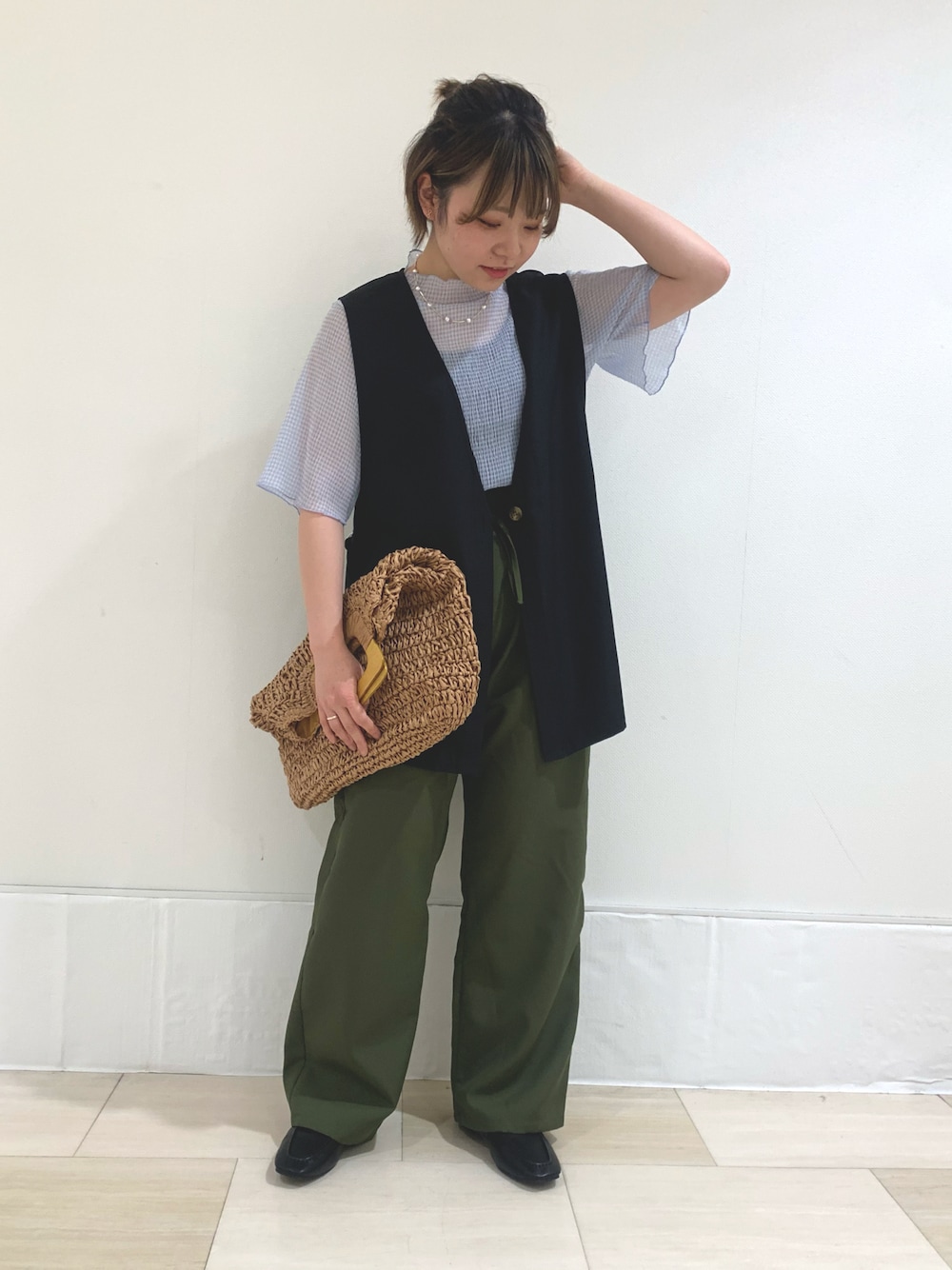 --------------------------------------------- 身長:155cm ◆トップス 普段着用サイズ:Mサイズ 今回着用サイズ:Fサイズ 【着用感】 透明感あるブラウスでとても軽いです! 袖は二の腕まであるので、安心して着れます◎ ジレを着ることで締まりのあるコーデになり、 腰回りが隠れるので何を着ても着痩せします。 サラッと羽織るだけでオシャレさんです! ◆ボトムス 普段着用サイズ:Mサイズ 今回着用サイズ:Fサイズ 【着用感】 インして可愛いハイウェストのパンツです。 シルエットちょうど良くトレーナー合わせも◎ ---------------------------------------------