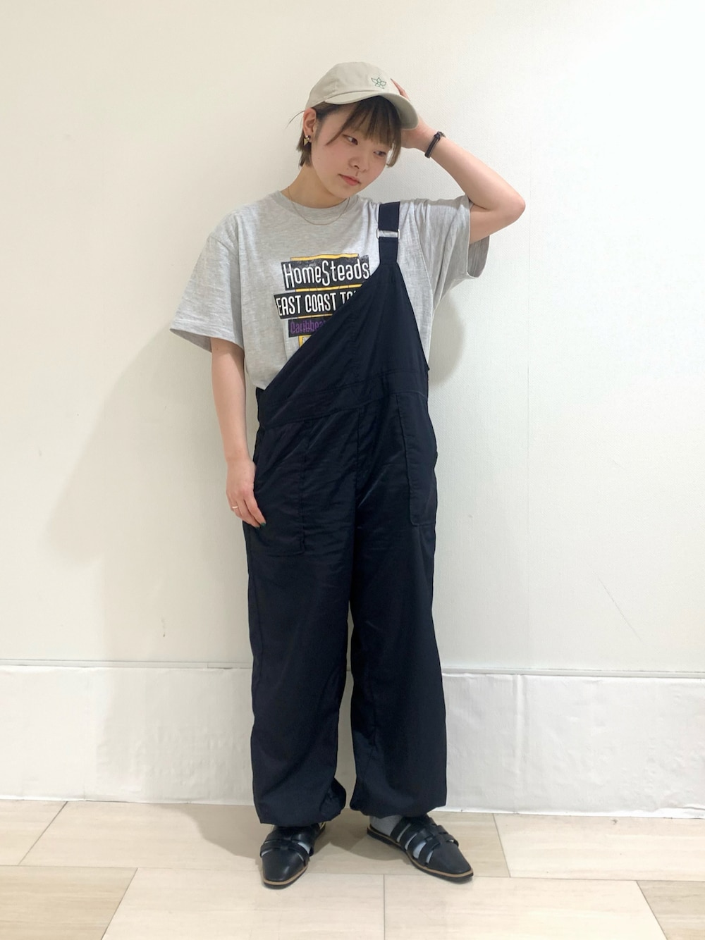 身長:155cm リアルバイコーデ ◆トップス 普段着用サイズ:Mサイズ 今回着用サイズ:Fサイズ 【着用感】 色が数色入っているので、 1枚で主役のツアーT。 ロッキーでサロペとの相性抜群! メンズライクコーデです◎ 袖の丈感もちょうど良く パンツ、スカートにも合わせやすいです。 ◆サロペット 普段着用サイズ:Mサイズ 今回着用サイズ:Fサイズ 【着用感】 シャカシャカな生地感で、 スポーティです! 裾もたぽっとしていて今年ぽいコーデ◎ 片方、肩外して中に入れちゃってます。 お気に入りのトップスを、 存分に見せてちょっぴり個性的な着こなしに! シルエットも抜群に良いです。 お腹、腰回り、足のラインが気になる方へ オススメのアイテムです。 ◆グルカミュール 普段着用サイズ:Mサイズ(23.5) 今回着用サイズ:Mサイズ 今年抜群に可愛いグルカミュールです。 靴下合わせが可愛いです◎ 色々な系統に対応できる万能なシューズです。