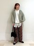 ライトアウターで春コーデ ◆トップス 普段着用サイズ:Mサイズ 今回着用サイズ:Fサイズ 【着用感】 レイヤードトップスで、一枚で重ね着風なので 厚くならずにかさばりません◎ 裾のシャツ部分は透け感あり、異素材なのが オシャレに見えます。 お尻隠れるので、体型カバーにもなり オフィスシーン、お出かけシーンに万能です! アウターは薄くて軽いです! 首元Vネックなので、スッキリ見えます。 裾部分ゴム入っているので、 クシュッとデザインで見せられます。 中のお洋服かさばらないです! ◆ボトムス 普段着用サイズ:Mサイズ 今回着用サイズ:Fサイズ 【着用感】 カラーと柄がポイントな、 サラッと軽いパンツです。 コーデの一癖になる、おしゃれアイテム◎ ウエストゴムで、ストレートラインなので、 コクストさんが得意なパンツです! ----------------------------------------------- 《モモPプロフィール》 •身長:155cm •骨格ストレート •足:23.5cm •下半身ムチっと •癖毛ハイトーンボブ •着痩せ、きれカジュ、メンズライクコーデ 特にパンツスタイルのご提案が得意です! Instagram→gp_mp412 モモP 最新コーデ載せてますので、ぜひご覧ください♡ ----------------------------------------------