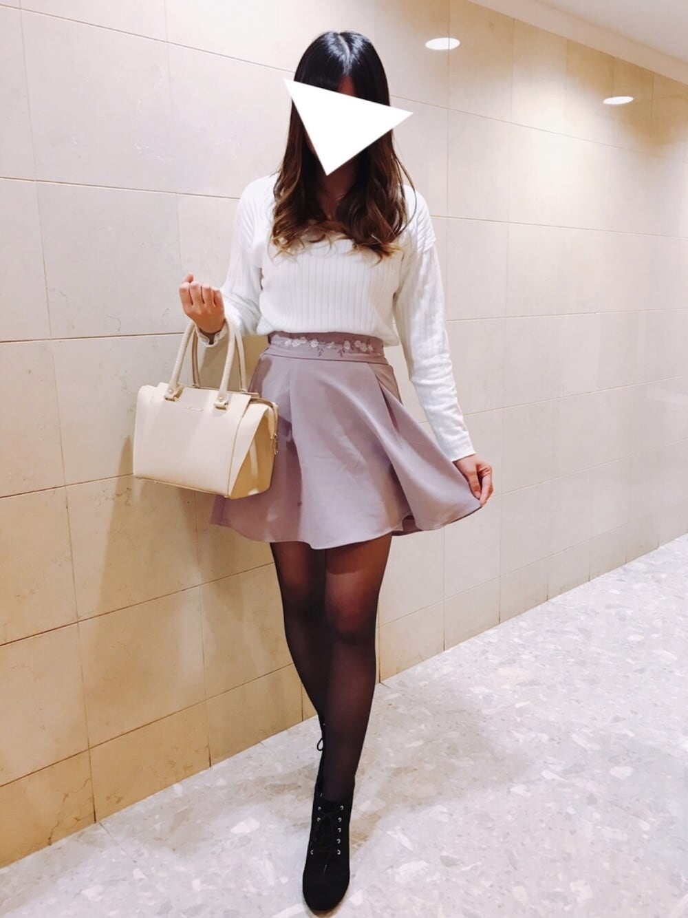 東京へのお出掛けコーデ👗💗 ウエストの刺繍に一目惚れ👀💕 ミニ丈ですがスカパンなので安心👍✨ シンプルなトップスをINして ウエストのラインを強調してみました🙋