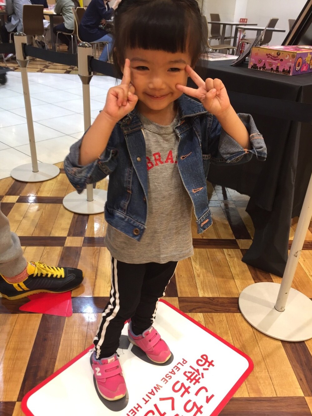 いつもみていただいてありがとうございます❤️今日もいいお天気でしたー。でしたのに…家でゴロゴロしてしまった😱ので父ちゃんが仕事から帰ってきてからお願いしてドーナツでも🍩買いに連れてもらいました。ウキウキで足合わせて並んでます✌️🚶🚶♀️🚶♀️🚶♀️🚶