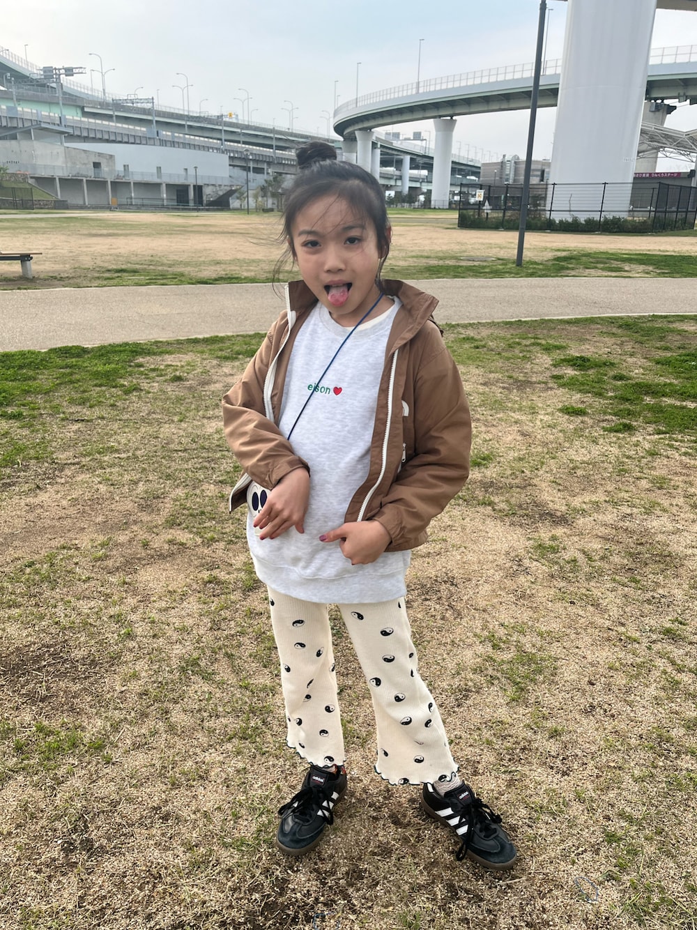 いつもみていただいてありがとうございます✨ 公園コーデ 広場でボール遊びしました。 あと帰りに🌸🌸探しにちょこと寄り道して帰りました。 スエット140やのにナイロンパーカー120ぐらいもうあかんよね😭