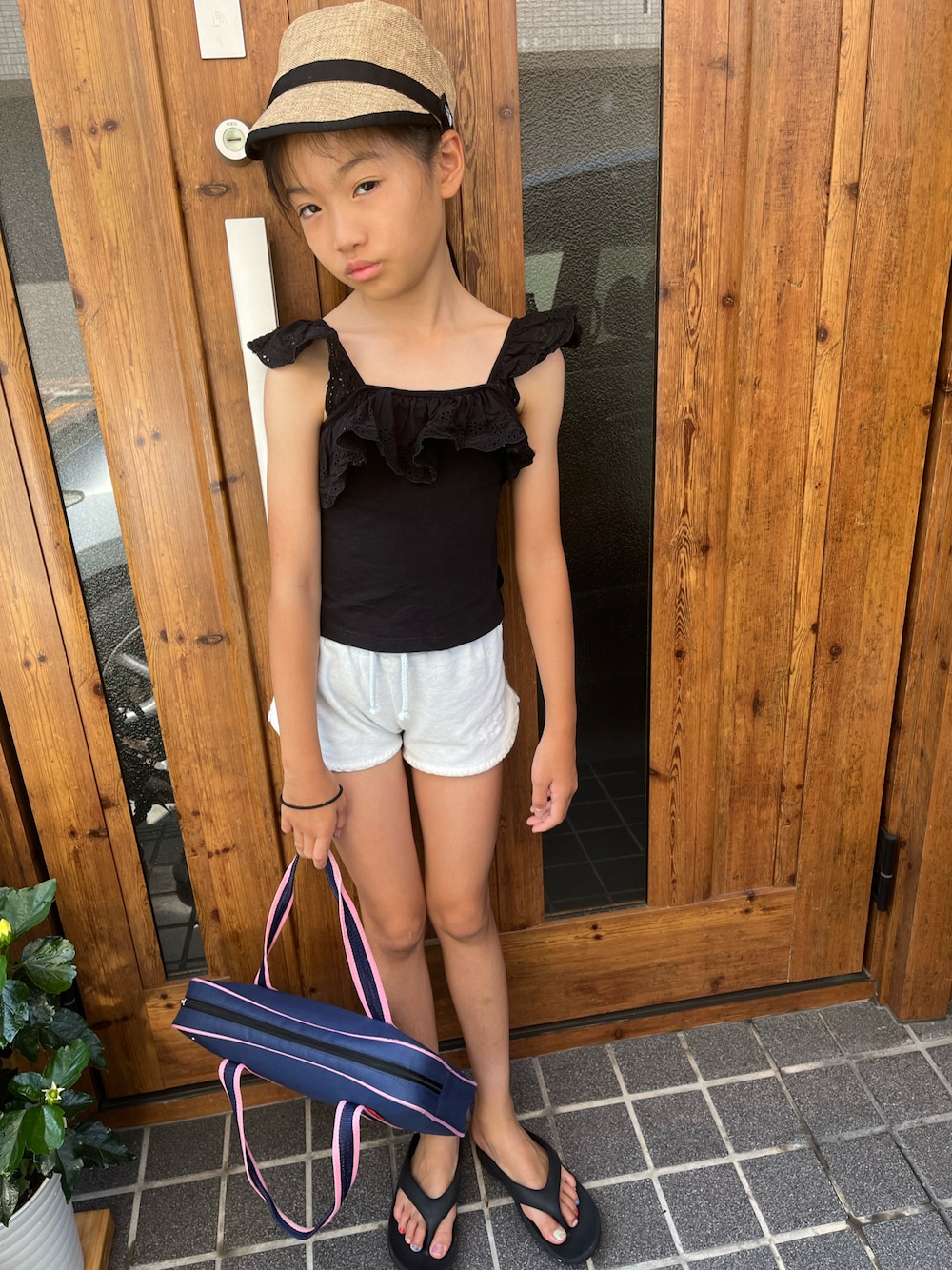 いつもみていただいてありがとうございます✨暑すぎてお習字行くのにすっごい夏スタイル 直ぐ海行けそうコーデ