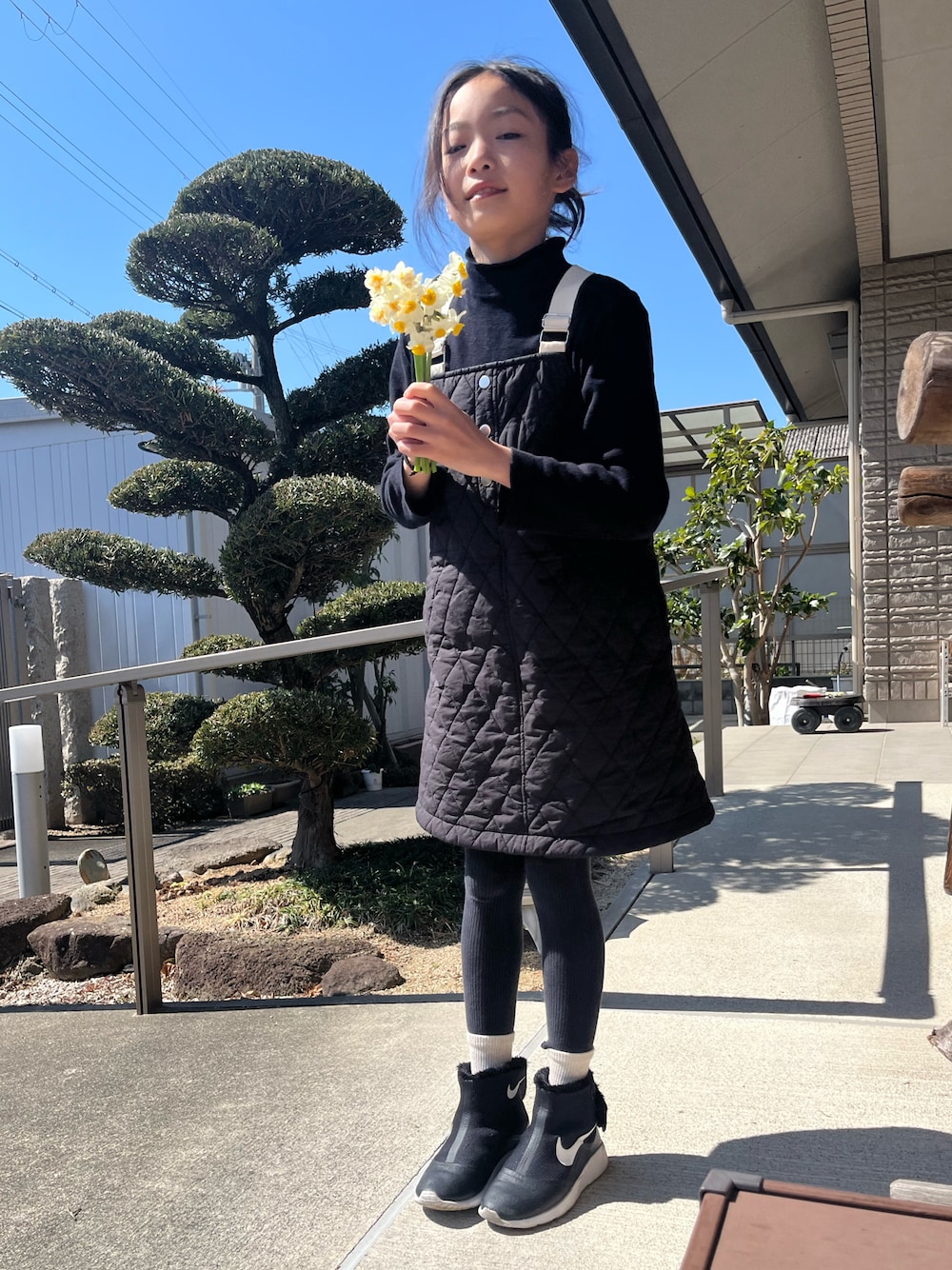 いつもみていただいてありがとうございます✨ お彼岸で御供えもってばあちゃん家へ 裏の畑で水仙が綺麗だったので🏺へ, 花粉がひどく目の周りがまっかになってました😭😭