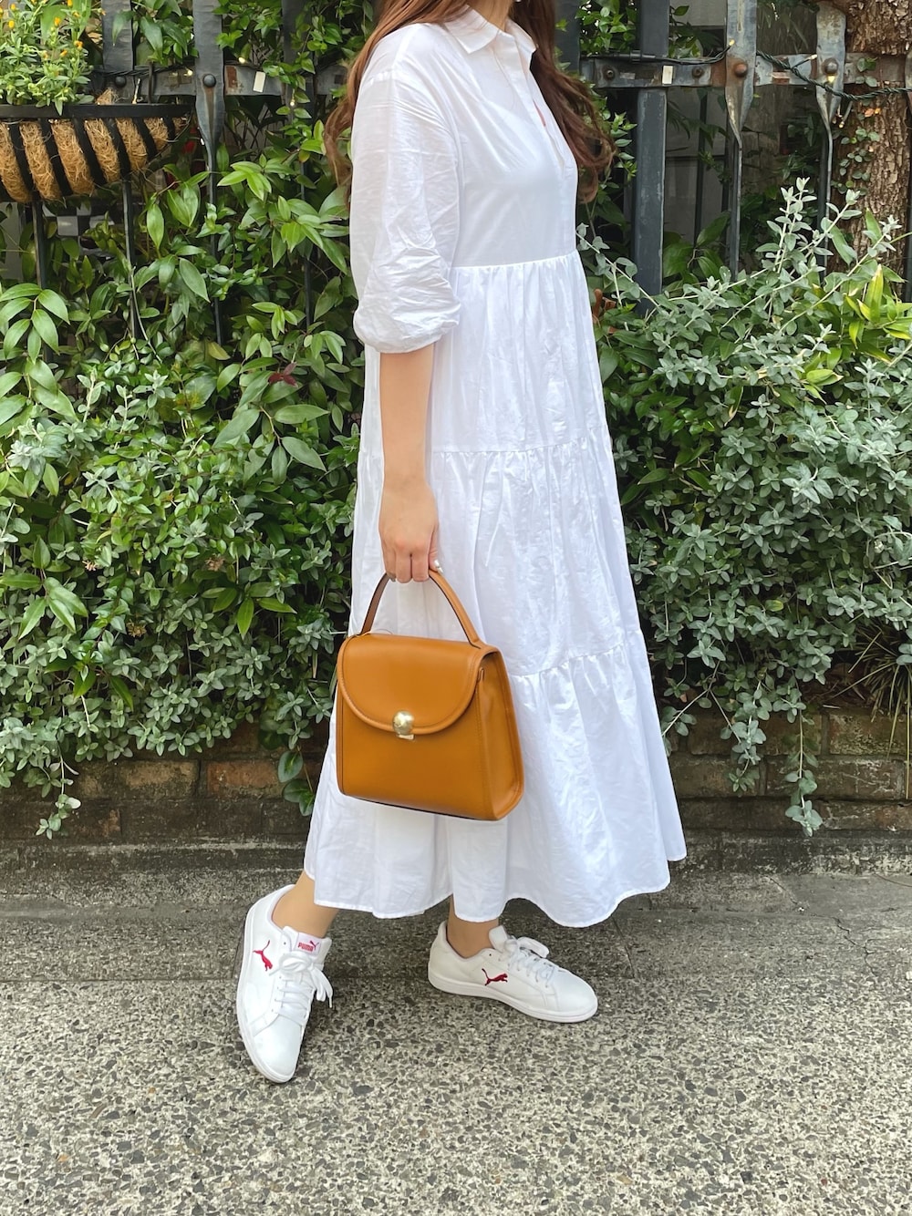 ゆったりとしたシルエットのワンピースに コロンとしたシルエットのバッグを合わせて大人カジュアルに仕上げました☺︎