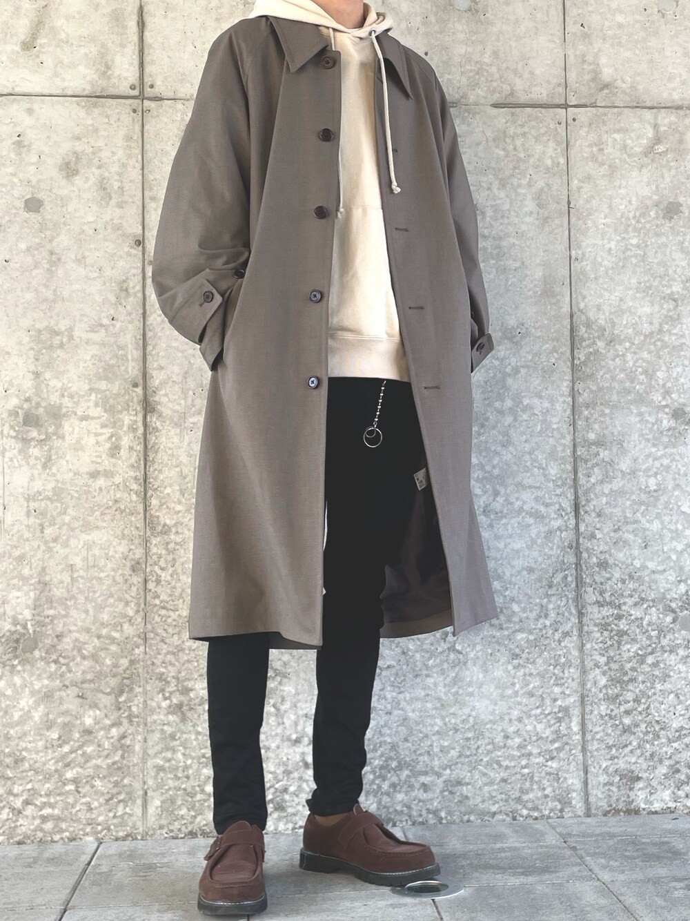 kanji のステンカラーコート「BALMACAAN COCOON COAT」を使ったコーディネート