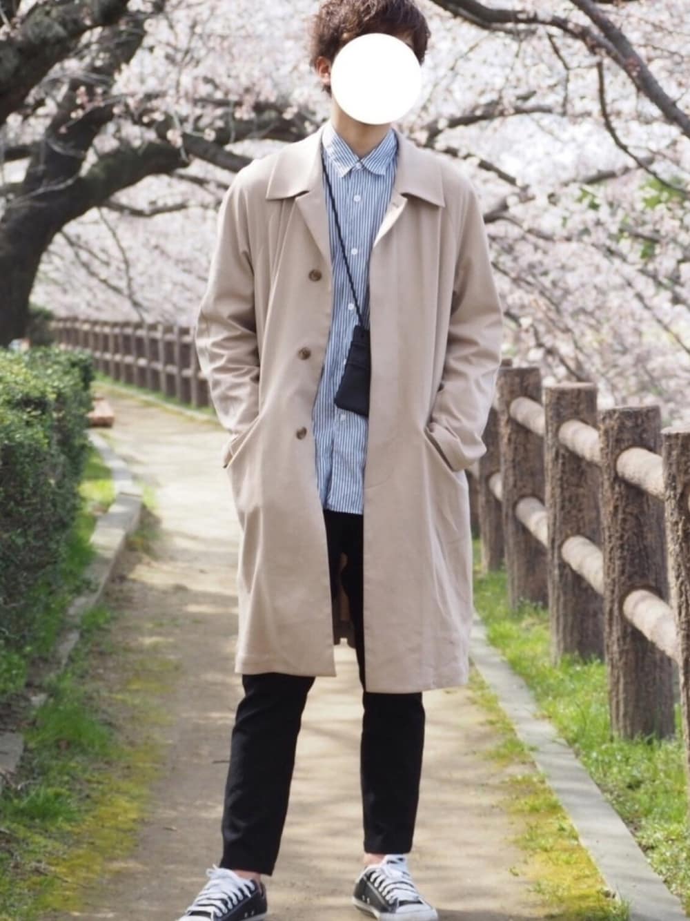 ストライプシャツにベージュのコート相性抜群🙆♂️ 桜が満開ですな🌸 ……………………………………………………… 《🔎🔎🔎》 何かありましたらお気軽にご連絡ください。ご質問やご依頼等もこちらでお受けしてるのでお気軽にどうぞ😟 ⭐︎instagram→riyou7192 ………………………………………………………… 《size》 コート M トップス S パンツ M シューズ 27