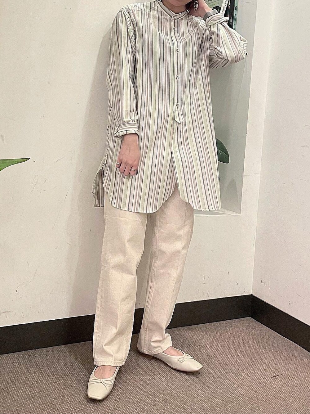 春らしいカラーリングのストライプシャツ⛲️ 少し長めの丈感がめちゃくちゃ可愛いです〜!! instagram @_mh9___
