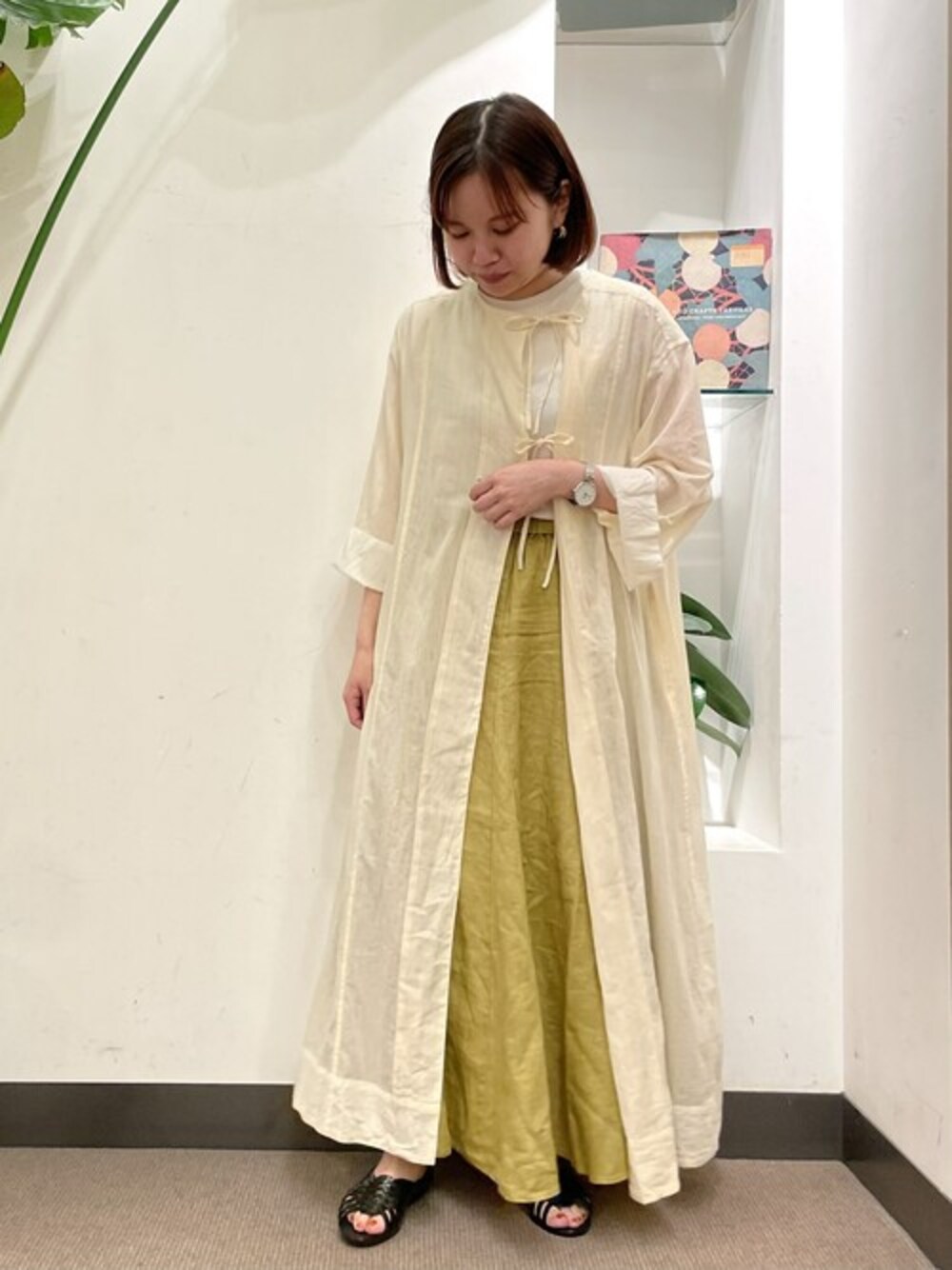ホンダ マユのワンピース「siiwa カディ先染めストライプカーデワンピース」を使ったコーディネート