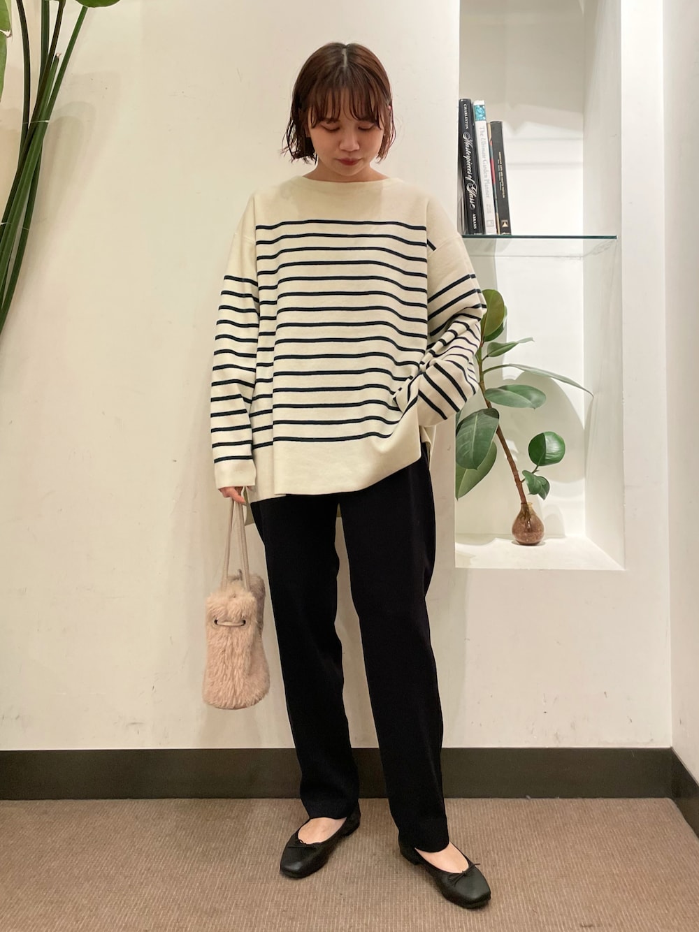 大人気だったボーダーニットが再入荷です✨ ゆるっとしたサイズ感で シルエットがとにかく可愛いニット☺️ 薄手ニットなので春先にもオススメです◯ パンツはストレッチがはいってるので、 かなり楽に穿いていただけます💭 テーパードに近いシルエットでスッキリ見えもしやすく お仕事用としても使いやすいパンツです☺︎ instagram @mayuhonda_