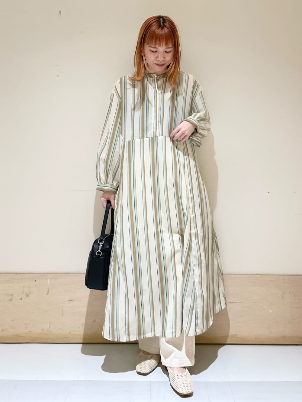 ホンダ マユのワンピース「『UR TECH Smart Linen Touch』カラーストライプワンピース」を使ったコーディネート