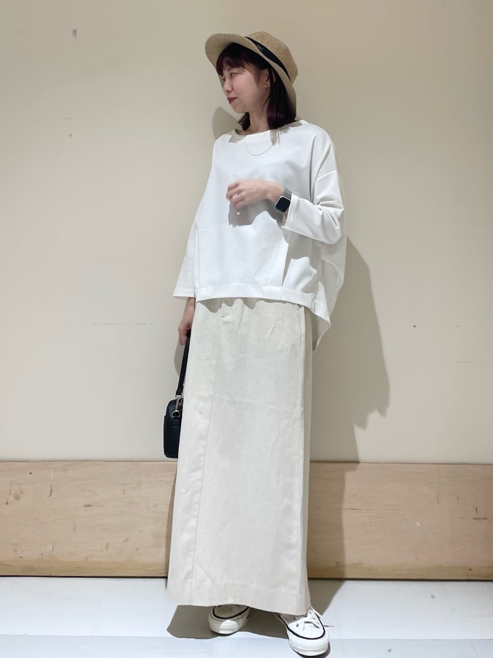 ワントーンで合わせてみました〜! トップスは生地感とっても柔らかく着心地良いです◯ 後ろ長めなのでおしり周りまで隠れて安心です😌 スカートは程よいタイトなシルエットなので ピタッとすることなくきれいに穿けます💭 丈感もちょうどよかったです^ ^ instagram @mayuhonda_