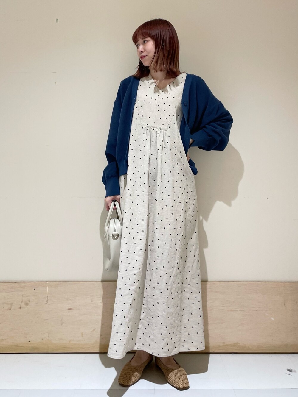 サラッとしたリネン素材のワンピース☺︎ ドット柄が可愛いです。 丈感も意外と長すぎず わたしの身長でも着やすかったです^ ^ カーディガンはモチモチとした柔らかい生地感で 肌触りも良く素肌でも安心です😌 ショート丈なので色々なアイテムともバランス取りやすく テイスト選ばず羽織れますよ〜! instagram @mayuhonda_