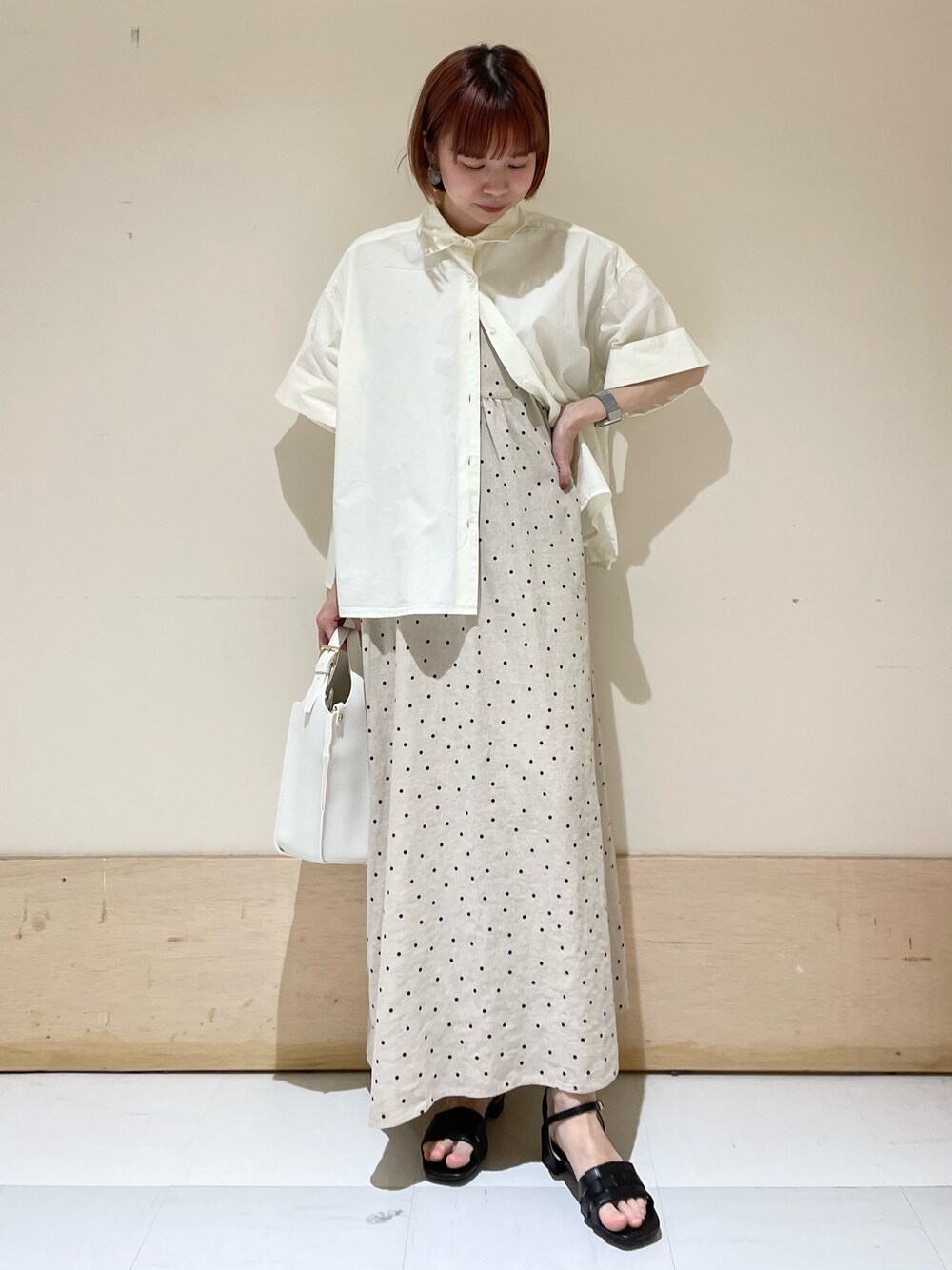 ホンダ マユのワンピース「リネンレーヨンドットワンピース」を使ったコーディネート