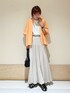 サラッと羽織りやすいワイドシャツ☺︎ ショート丈でバランス取りやすいです! 袖がかなり広めなので腕細く見えます◯ スカートはウエスト総ゴムでとっても楽ちん^ ^ サラッとした生地感で軽やかな着心地です☺️ instagram @mayuhonda_