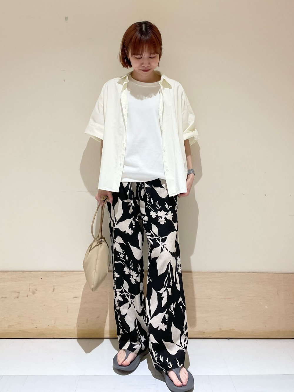 モノトーンでまとまてみました! シンプルになりすぎないように大ぶりな柄物合わせて パキッとメリハリを付けてます◯ リネン素材のパンツなので真夏でもサラッと涼しく穿けます👌 シャツはゆったりワイドめですが 長さ短めなのでダボっとした印象にならず羽織れます〜! ハリのあるしっかりめの生地感です😌 instagram @mayuhonda_