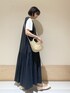 ふんわり広がるシルエットが可愛いワンピース☺︎ Tシャツ合わせでジャンスカみたいに着てみました! 生地がとても柔らかく動いた時のシルエットが可愛いです☺️ 合わせたTシャツは袖がコンパクトめなので、 インナーで着ても腕周りもたつかず着れました◯ instagram @mayuhonda_