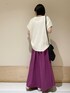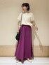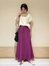 凹凸のある風合いが可愛いトップス☺︎ 形はとてもシンプルなので合わせやすいです! 針抜きならではの生地感で のっぺりとした印象になりにくいです◯ 裾がラウンドしてるので、前だけタックインしたときに キレイに斜めに流れるシルエットになります🙂 スカートはリネンが入った素材でとてもサラッとしてます! 着丈がそこまで長くないので、 わたしの身長でもフラットシューズ合わせ大丈夫でした^ ^ instagram @mayuhonda_