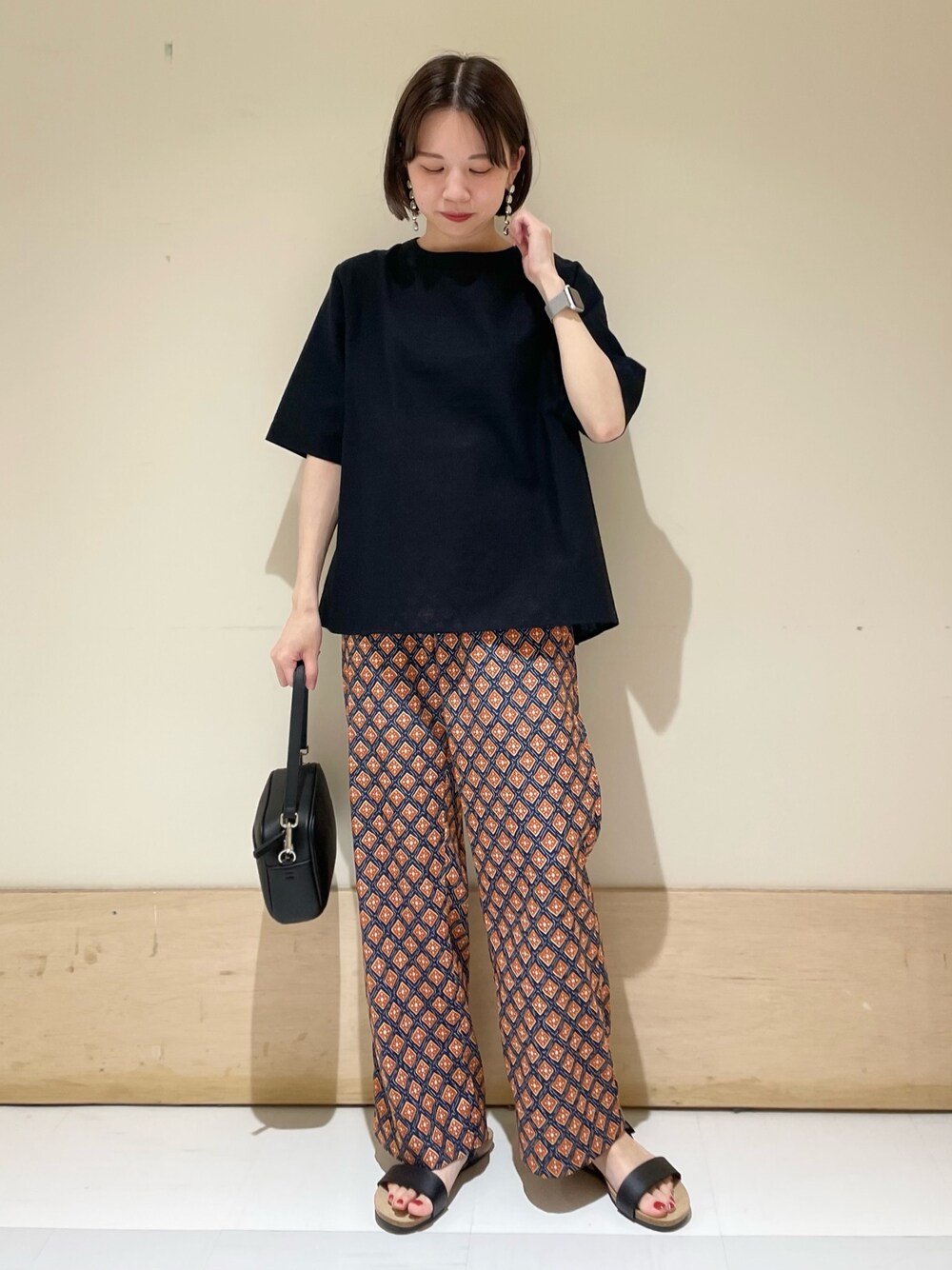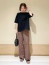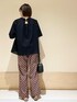 リネン混のトップスはシンプルでとっても合わせやすく、 後ろのリボンデザインがさりげなくて可愛いです^ ^ 着丈長くないので、ワイドパンツやスカート合わせでも もたつかないシルエットで着れます〜! パンツはドアーズらしい総柄のプリントが可愛いです😌 生地感とてもサラサラしていて涼しいです◯ instagram @mayuhonda_
