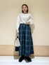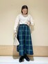 身長:152cm 体型:ウェーブ パーソナルカラー:サマー [サイズ感] トップス:ややゆとりあり スカート:標準的 シューズ:標準的 [素材感,着心地] トップス:身頃と袖の素材感が可愛いアイテム。二の腕周りのボリュームがそこまでないので上からカーディガンやジャケットなども羽織りやすいです。 スカート:ウエスト内側に紐が通ってるので緩すぎることもなく安心です。しっかりハリのある生地感です。 シューズ:レッグ細めのブーツですが、サイドゴアなので着脱はしやすいです。 [ポイント] 今時期から秋にかけて重宝するアイテムで合わせました。チェック柄は落ち着いたカラーリングなので、主張強すぎず馴染みます。 instagram @mayuhonda_
