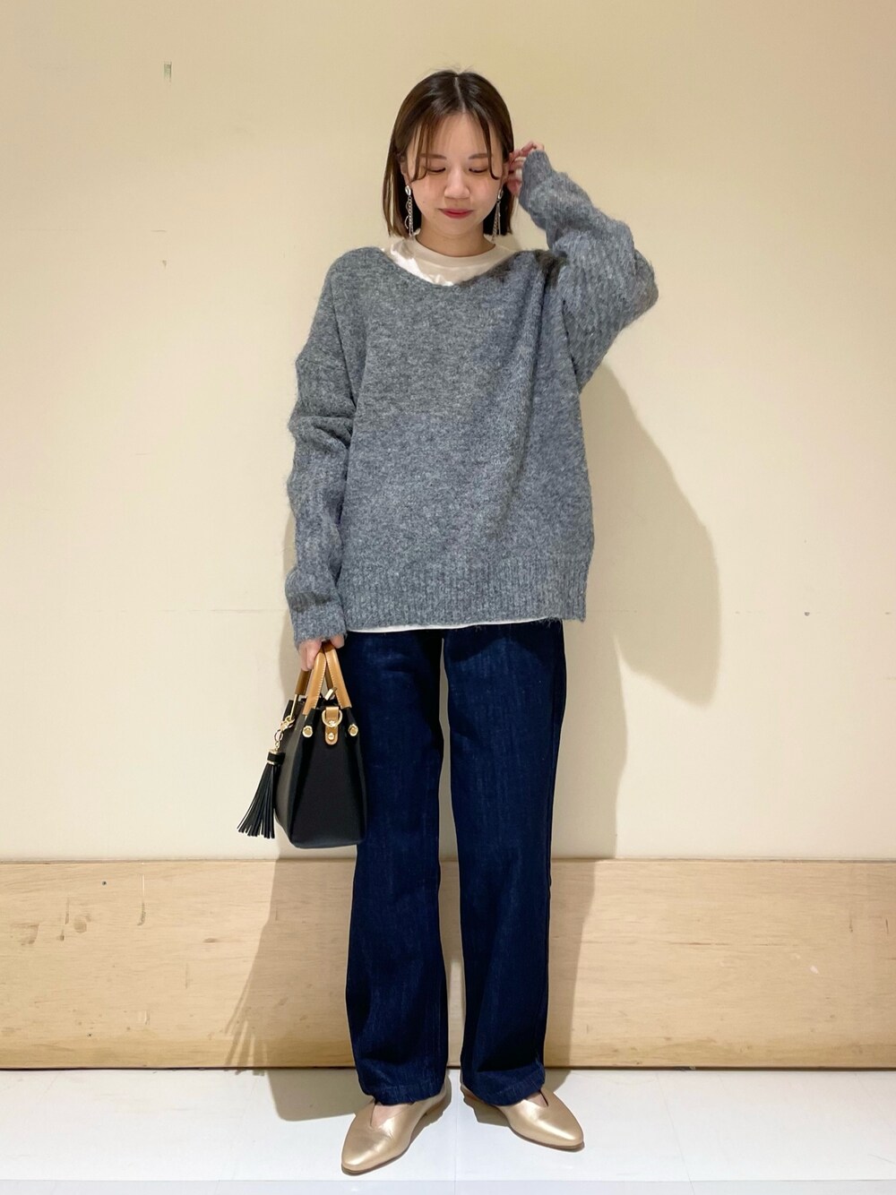 身長:152cm 体型:ウェーブ パーソナルカラー:サマー [サイズ感] ニット:ややゆとりあり トップス:標準的 パンツ:標準的 [素材感,着心地] ニット:ゆったりシルエットが可愛いざっくりニットです。毛足長いですが、意外とチクチク感なく着れます。 トップス:ヘインズの完全別注アイテム。袖リブがポイントです。 パンツ:私も愛用してるデニムです。生地感柔らかく動きやすいです。太すぎないワイドパンツなので合わせやすいです。 [ポイント] Vネックが苦手なのでクルーネックのロンTをインナーに合わせました。ニット1枚だときれいめにも合わせられます。 instagram @mayuhonda_