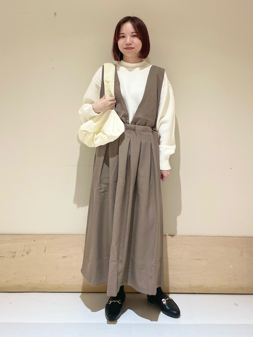 身長:152cm 体型:ウェーブ パーソナルカラー:サマー [サイズ感] トップス:標準的 ジャンスカ:ややゆとりあり シューズ:標準的 [素材感,着心地] トップス:モチモチでとても柔らかい素材です。1枚でもインナーでも合わせやすい生地感で今から長く重宝するニットです。 ジャンスカ:フランネル素材のような肉厚なジャンスカで暖かいです。インナー次第で雰囲気変わりたくさん着回しできます。 シューズ:フィット感のある形で柔らかく、歩きやすいです。22.5cmほどですが、36でジャストサイズです。 [ポイント] テイスト問わず馴染みやすいジャンスカで、個人的に今季おすすめのアイテムです。長さを調整できるのも嬉しいです。 instagram @mayuhonda_