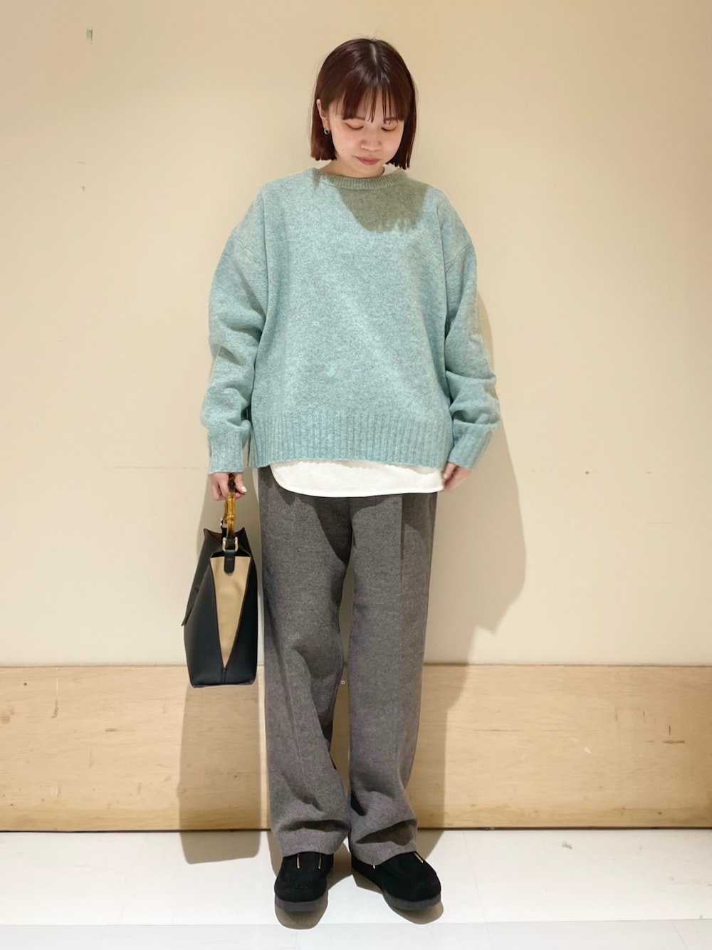身長:152cm 体型:ウェーブ パーソナルカラー:サマー [サイズ感] トップス:標準的 ニット:標準的 パンツ:ややゆとりあり [素材感,着心地] トップス:丈感が元々長めで裾がラウンドしており、ニットやスウェットのインナーで重宝します。素材感も柔らかいですが、しっかりしてるので1枚でも着れます。 ニット:爽やかなブルーが可愛いです。チクチク感が抑えめで着心地とても柔らかいです。詰まりすぎない首元がお気に入りです。 パンツ:素材感柔らかめで軽やかな生地ですが、ウール混なのでしっかり暖かく真冬まで穿けるパンツです。ラインがとてもきれいなのでお仕事用にもおすすめです。 [ポイント] ハミルトンシリーズの中でも一番ベーシックな形でたくさん着回しの効くニットです。 instagram @mayuhonda_