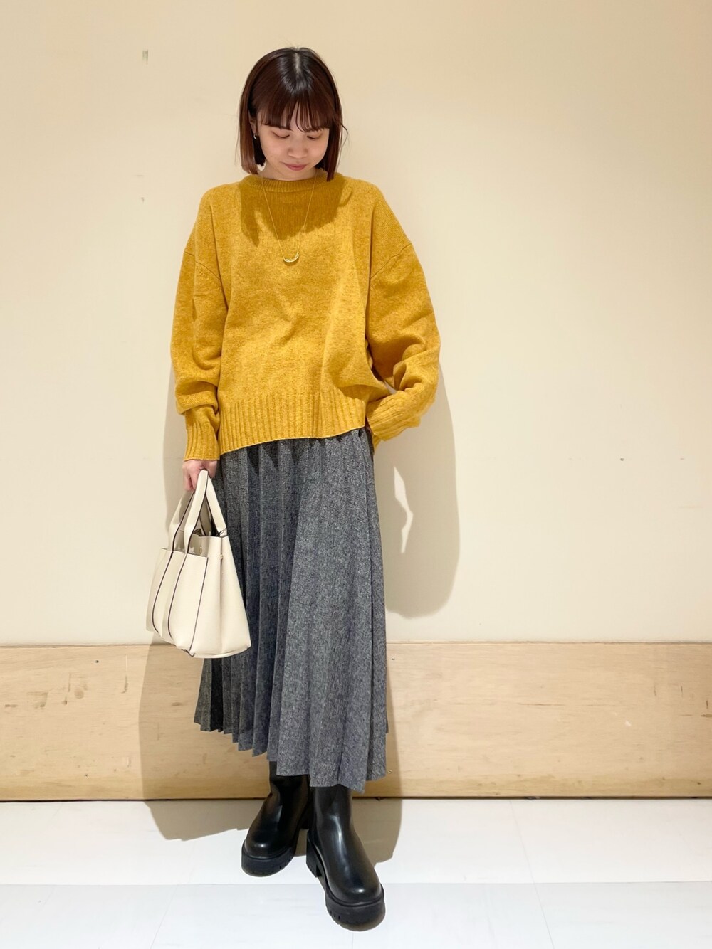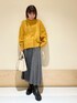 身長:152cm 体型:ウェーブ パーソナルカラー:サマー [サイズ感] トップス:ややゆとりあり スカート:標準的 [素材感,着心地] トップス:カラーが可愛いハミルトンニット。落ち着いたイエローで普段色物着ない方にもおススメです。肌触り良くチクチクしません。 スカート:着丈短めのデザインで小柄な方でもスッキリ穿けます。ウール見えする素材で季節感も出ます。 [ポイント] ゆったりめのニットなのでスッキリとしたスカートを選びました。 instagram @mayuhonda_