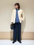 身長:152cm 体型:ウェーブ パーソナルカラー:サマー [サイズ感] トップス:ややゆとりあり アウター:標準的 パンツ:標準的 [素材感,着心地] トップス:柔らかいウール素材のニットでチクチク感抑えめです。詰まりすぎないハイネックなので首回りも安心です。 アウター:ノーカラーなのでハイネックやタートルネックとの相性抜群です。着心地とても軽やかでサラッと羽織りやすいです。 パンツ:他のパンツに比べると短めなので、わたしの身長でもウエスト調整しなくてもすっきり穿けます。落ち感のある素材で穿きやすく、裏起毛なので暖かいです。 [ポイント] 暗めになりがちな今時期におすすめのスタイリングです。ブルーとアイボリー合わせは透明感が出ます。 instagram @mayuhonda_