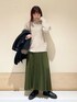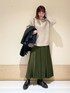 身長:152cm 体型:ストレート パーソナルカラー:サマー [サイズ感] トップス:ややゆとりあり アウター:ややゆとりあり スカート:標準的 [素材感,着心地] トップス:毛足が長めのフワッとした質感のニットです。丈は長めですが、ゆったりしすぎない身幅なのでダボっとしにくいです。 アウター:きれいめにもカジュアルにも合わせやすいミドルコートです。着心地軽いので肩こりも心配なく羽織れます。 スカート:ベーシックな形のプリーツスカートで、トップスのシルエット選ばず合わせやすいです。広がりにくいので大きめのトップスでもバランスよく穿けます。 [ポイント] カーキのスカートは探すと意外とないカラーなので、雰囲気も出ておすすめです。 instagram @mayuhonda_