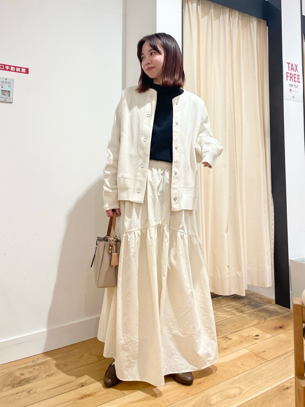 身長:152cm 体型:ストレート パーソナルカラー:サマー [サイズ感] トップス:標準的 カーデ:標準的 スカート:標準的 [素材感,着心地] トップス:襟が立ち上がるデザインで1枚で着てもTシャツ感が出にくいアイテムです。程よくハリのある素材で透け感も気になりません。 カーデ:リブの風合いが可愛いアイテムで、のっぺりしにくく主役になるカーディガンです。カットソー素材なのでお手入れもしやすく、ガシガシ着ていただけます。 スカート:ふんわり広がるシルエットが可愛いスカートで、シンプルすぎず雰囲気の出るアイテムです。腰回りはそこまでボリュームが出ず、切り替え位置から広がるのでダボっとした印象になりにくいです。 [ポイント] 淡めカラーで春らしく合わせました。どのアイテムも着回しが効くのでお手持ちのアイテムとの合わせもしやすいです。 instagram @mayuhonda_